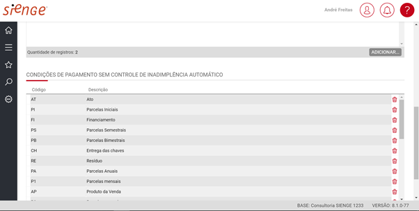 Na mesma tela, em “condições de pagamento sem controle de inadimplência automático”, adicione a condição de pagamento que você deseja que não seja enviada notificação de cobrança.