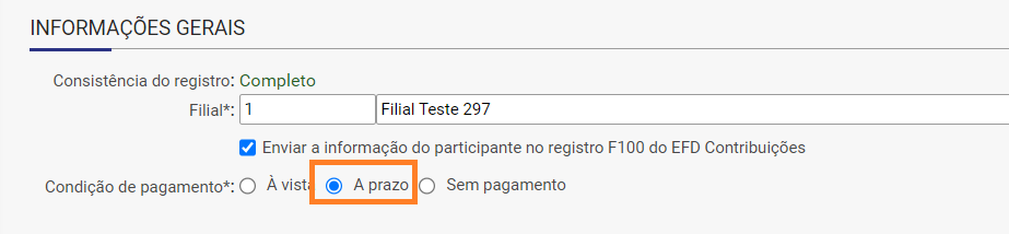 Esse cadastro indicará se a venda foi realizada a vista ou a prazo.