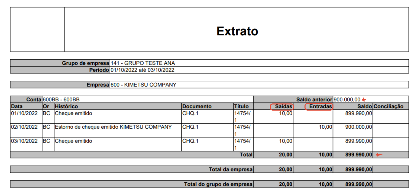 Pronto agora já temos o pagamento (saída) o estorno (entrada) e o pagamento efetivo (saída).
