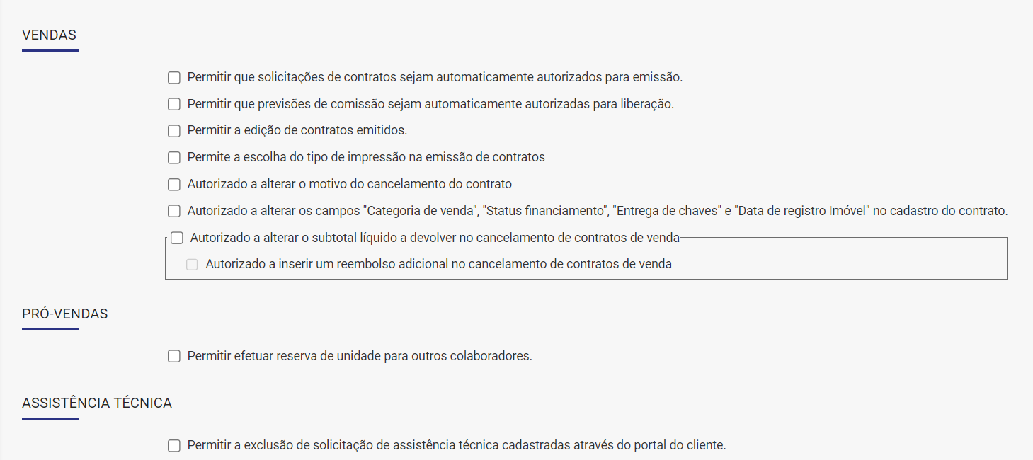 É preciso verificar também quais autorizações deseja conceder ao usuário no Comercial.