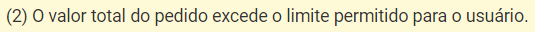 Onde neste exemplo seria considerado que o Limite de Pedido do usuário é 1100,00, e não os 1000,00 definidos no campo Limite de Pedido.