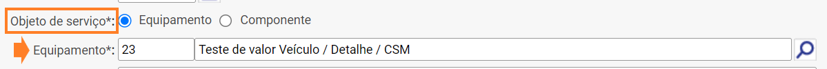 ➡Equipamento: Campo apresentado caso tenha sido marcada a opção Objeto de serviço - Equipamento.