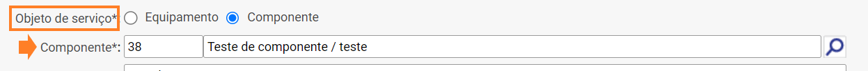 ➡Componente: Campo apresentado caso tenha sido marcada a opção Objeto de serviço - Componente.