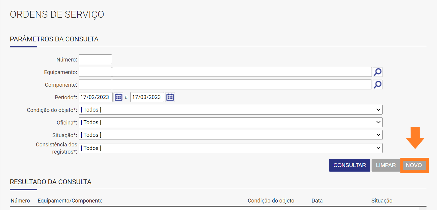 2. Além disso, precisamos definir o Objeto de Serviço*: se essa Ordem de Serviço será Equipamento ou Componente.