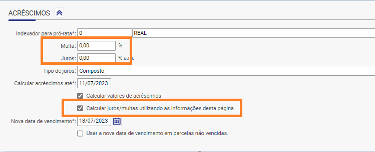 Desta forma, ao consultar os registros o sistema irá trazer o valor original da parcela, mesmo estando vencida, sem o valor dos acréscimos de multa e juros.