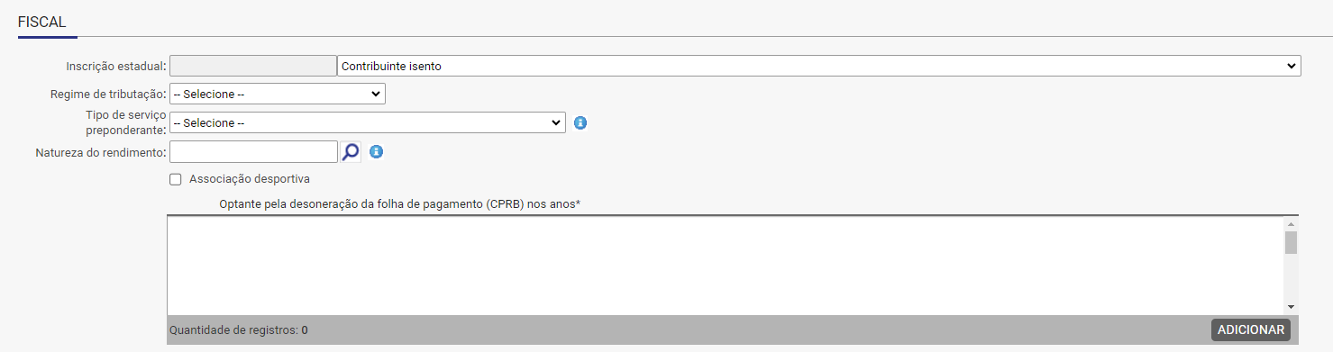 d) Grid 'Optante pela desoneração da folha de pagamento (CPRB) nos anos' para informar que o credor é optante pela CPRB.