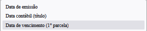 Data de Vencimento (1° parcela): Data do vencimento da primeira parcela do título;