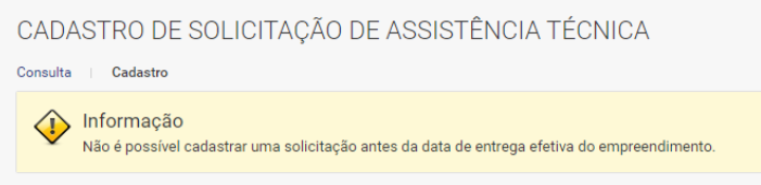 Desta forma, o empreendimento fica com data de entrega preenchida e consegue seguir com a abertura da solicitação da assistência técnica na rotina: Comercial / Assistência Técnica / Solicitação Assistência Técnica