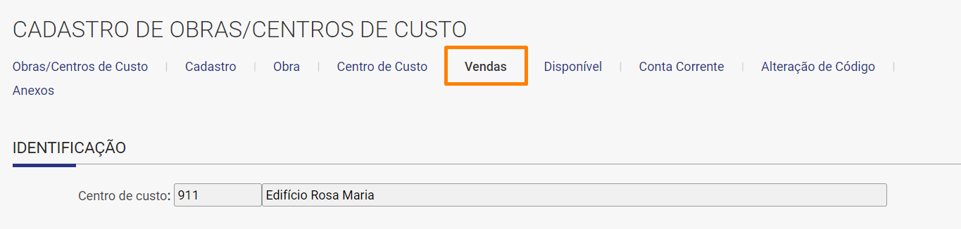 2-  Após acessar o empreendimento, poderá selecionar a aba "Vendas";