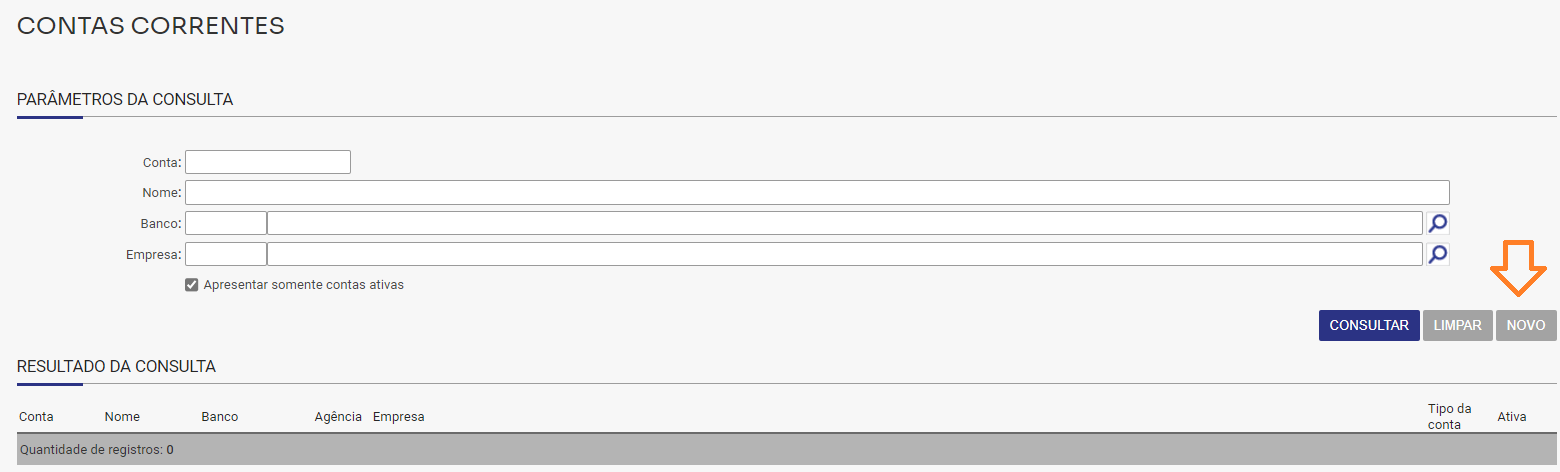 1. Acessar a rotina: Apoio / Contas Correntes / Cadastros:
