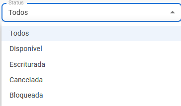 - Status: permite pesquisar por status da nota contendo as seguintes opções: Disponível, Escriturada, Cancelada ou Bloqueada.