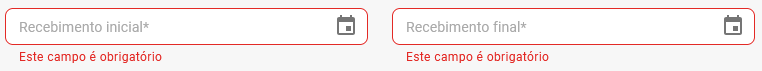 Nota! Os campos Recebimento inicial e Recebimento final são obrigatórios.