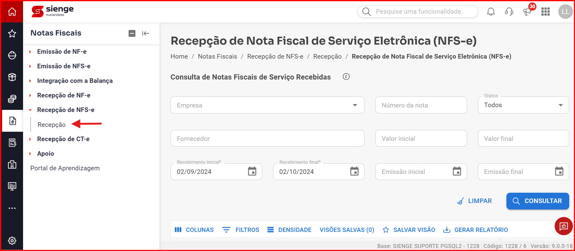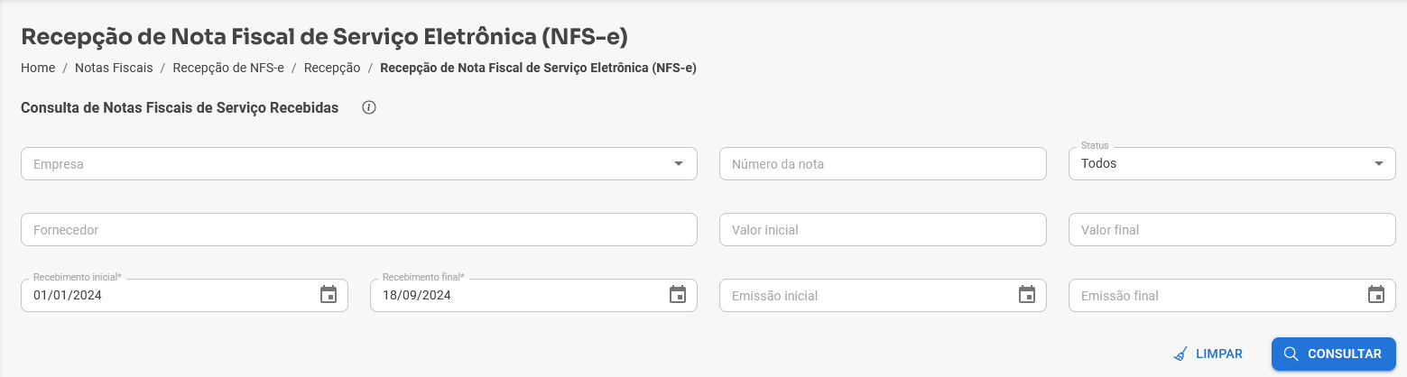 Notas Fiscais > Recepção de NFS-e > Recepção